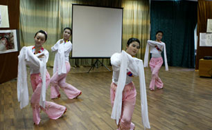 这次文化周由汉语专业2年级学生刘德美拉和来自新疆大学的进修生海米提来主持,虽然他们是不同国家、不同语言的学生,但是用生动、活泼语言、模切地关系介绍每一个节目,就拉近了和观众之间的距离。因大部分参与此活动的学生是新西伯利亚国立大学人文系学生,邀请了人文系东方教研室主任叶列娜.瓦伊特科博士讲话。首先她肯定了这次孔子课堂为了举办《中国文化节》所做的全范围工作,感谢了中国代表团的到来,盼着欣赏中国代表团带来的精彩节目,同时希望继续发展各方面的合作关系。邀请中国代表团团长新疆友协副主任王崇安先生时,他表示感谢孔子课堂热心接待中国代表团,指出了孔子课堂通过《文化节》,为中俄友好关系所作出的贡献。