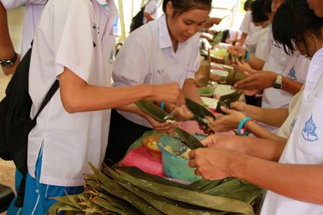 普吉中学汉语专业的学生,也主动担当志愿者为来参加活动的师生服务。这些学生分工明确,有的负责包粽子,有的负责知识问答,有的负责中华才艺比赛,有的则负责煮粽子和分粽子。有了这些学生志愿者的帮助,整个活动进行得有条不紊,十分顺利。