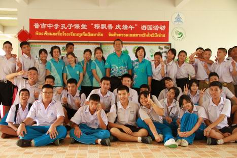 普吉中学有百年历史,在校师生超过3000人,2001年开设汉语课程,是当地首批开设汉语课程的学校之一。普吉中学孔子课堂自2009年7月揭牌以来,以建设自己为泰西南地区中国文化推广中心、汉语教学示范中心、汉语考试中心为目标,先后举办了汉语演讲比赛、中国文化节、汉语营、图书展等活动,极大地推动了泰国西南部汉语教学事业的发展。(卢玉珊)