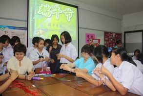 此外,素攀孔子学院志愿者们还设置有茶艺、剪纸、中国结三个板块,让学生在学习包粽子之余有更多的中国文化体验。 三汶营汉语组的Pabtawan老师说,这是三汶营中学第一次参与体验“庆端午”的文化活动,该活动不仅让三汶营师生了解了中国端午节历史知识,还能让他们学会包粽子并亲身体验中国文化,真是受益匪浅! (谭淑玲 张华进)
