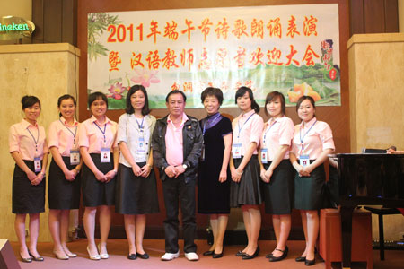2011年6月6日晚,勿洞市孔子学院“2011年端午节诗歌朗诵表演暨汉语教师志愿者欢迎大会”在勿洞文华酒店隆重举办。勿洞孔院理事长、勿洞市市长拿督陈进森博士、全体教师、学生会全体成员、2011年优秀学员赴华团全体团员及本土汉语教师近百人参加了此次大会。