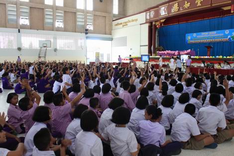 合艾市国光学校教育慈善会董事长兼孔子课堂泰方代表方志雄、秘书兼国光中学孔子课堂泰方负责人马国新、中方负责人魏光磊及全体中泰文老师2000余人参加了当天的端午节文化宣传日活动。