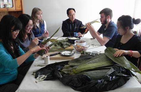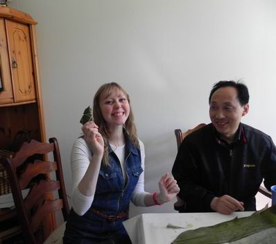 12点多,孔院的老师、挪威学生和学联负责人就早早来到卑尔根“中国网”负责人白凯娜(中文名字)的家里,大家一起包粽子。白凯娜和他丈夫白达鹰都是以前学汉语的学生,今年复活节他们还去中国旅游了,并参加了HSK4级和5级的考试。