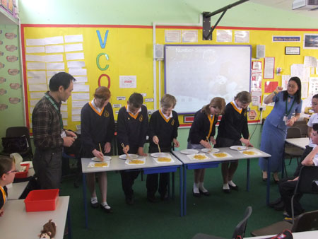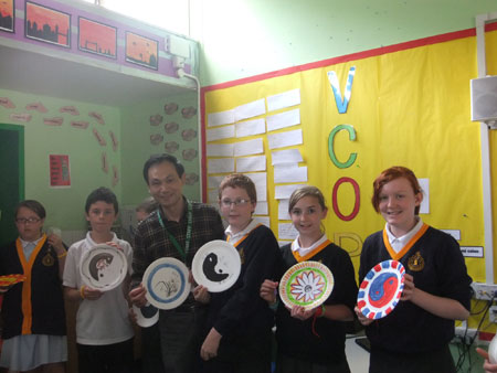 来自英国SSAT孔子课堂的汉办教师唐兴和BC项目助教陈小莲精心组织了丰富多彩的文化活动项目。全部活动共分为6个部分:中国知识介绍、中国书法艺术、中国结编织、折纸和剪纸、中国瓷盘图案设计和筷子比赛。