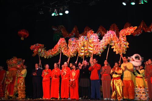 演出接近尾声时,舞龙、舞狮登台了,他们不仅在台上舞,而且还走下来与观众互动。更令人惊叹的是这些身手不俗的舞者并非中国人,而是土生土长的智利人,在这个遥远的国度,有那么一群人,他们在执着地宣传着中国文化,令人感动。