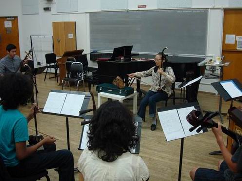 今年6月,“中国民族器乐培训班”在UCLA校园顺利开班。培训班的学员来自美国各地,有大学生,也有中学生。这些美国学生都热爱音乐,有一定的乐器演奏的基础,比如会吹萨克斯管、会弹奏吉他、会拉小提琴等,但是从来没有接触过诸如二胡等中国民族乐器。李琦教授以其对中国民族音乐的深刻理解和娴熟的教学技巧,在很短的时间内,训练出一支完全由美国学生组成的中国民族乐队,二胡、高胡、阮、琵琶、扬琴、筝、三弦、笙、笛子、葫芦丝以及锣鼓等打击乐器一应俱全,并达到了登台演出的水平。