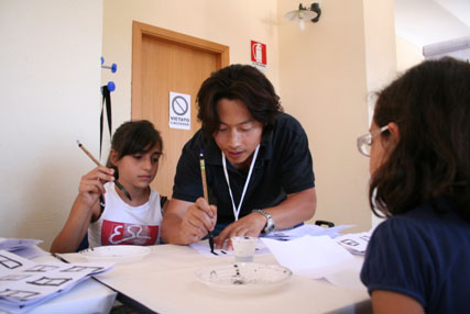 活动中,柯拉拉老师和傅海峰老师分别于7月2日、3日下午在市青少年活动中心向当地的五十多名学生教授和展示了基础汉语和中国书法艺术。从汉字的构成到汉字发音,学生们听得兴趣盎然、热情高涨,对古老而神秘的东方艺术如醉如痴,直到两个多小时的活动结束还迟迟不肯离去。