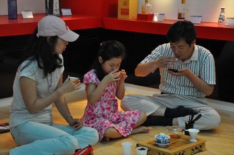 接着,金教授亲自现场示范了各种茶的泡法和喝法。先是示范了韩国人普遍熟知的普洱茶,接着是红茶、铁观音、绿茶。为了使现场的牙山市民亲自体验泡茶,我们准备了多套茶具,市民在金教授的指导下喝上了自己泡的茶。金教授还详细讲解了应该放多少茶叶、要泡多久等的问题。在场的牙山市民品尝了各种美妙的中国茶,整个馆内茶香四溢,笑意盈盈。
