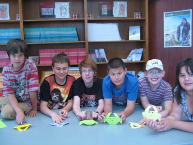 在制作中国艺术品的课程中,孩子们争先恐后地选择了自己喜欢的彩纸,认真地倾听着老师解说,一丝不苟地模仿着。看一只只生动的小螃蟹就这样被孩子们创造出来了。孩子们为自己的小螃蟹画眼睛,鼻子,还起了名字。啊!原来小螃蟹还可以蹦,这让孩子们高兴的叫起来。随后还即兴进行了一场小小的小螃蟹赛跑比赛。随后应学生们的要求,老师还教大家依次折叠了大象,小青蛙,飞机,桌椅等有趣的折纸图形。孩子们完全沉浸在创作的快乐中。