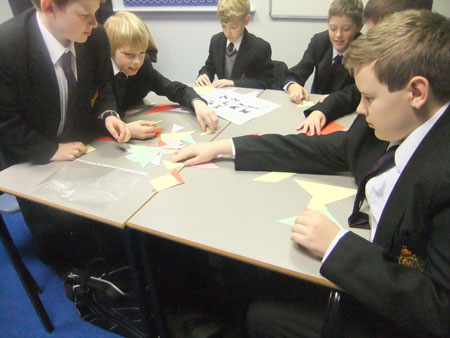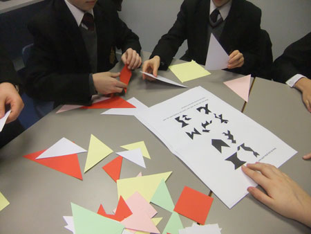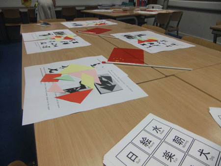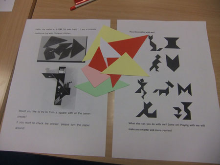 7月初,在英国林肯郡格兰瑟姆镇国王中学的孔子课堂上,举行了七巧板拼图大赛。孔子课堂的中国文化俱乐部,是学生们自由选择参加的,也是最受学生欢迎的俱乐部之一。俱乐部已经先后进行了茶文化、中国功夫、中国节日习俗、民间艺术、中国历史等主题活动。今天的主题则是中国传统玩具——“七巧板”。汉办教师将七巧板的拼图说明分组摆放在桌上,向学生们介绍了这一中国传统玩具悠久的历史与各种玩法。