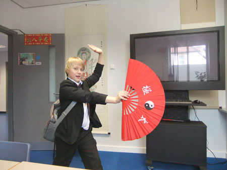 学生们通过孔子课堂了解了许多中国文化常识,学会说汉语,写汉字。每次的中国文化俱乐部上,还有十分钟的自由活动时间,有的同学用QQ与中国朋友视频聊天,有的练习毛笔字,有的玩电脑上的学汉语游戏,还有的太极扇已经打得有模有样了呢!这些都是学生们从平时的俱乐部活动中自主挑选出来的,活动主题是越积累越多,同学们对汉语,对中国文化的兴趣也越来越浓。