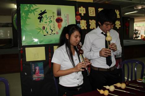 本次活动包括中国传统文化---中秋节的介绍、中文专业学生优秀作业展及中华才艺中国结、剪纸、书法、葫芦丝的现场演示与体验。本次学生优秀作业展在提高了大家汉语学习兴趣的同时,也增加了班级凝聚力。在中华才艺体验展台学生们认真听老师讲解,纷纷跃跃欲试,亲手体验中国文化。志愿者老师一个步骤一个步骤的示范,学生们在老师的指导下,用红纸剪出各种团花图案,用毛笔写出“福”字,接着又学习了如何吹奏葫芦丝,试吹了《映山红》、《友谊地久天长》等曲调。学生兴致勃勃,表现出对中国文化的浓厚兴趣。