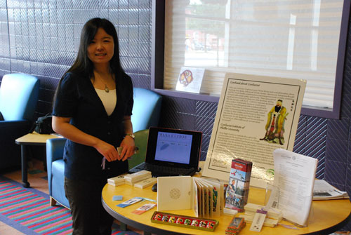 费佛尔大学孔子学院老师侯晓梅在文化摊位前