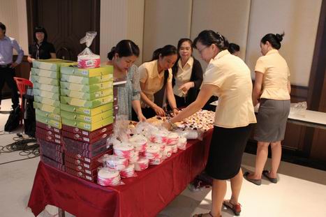 老师分发月饼给学生