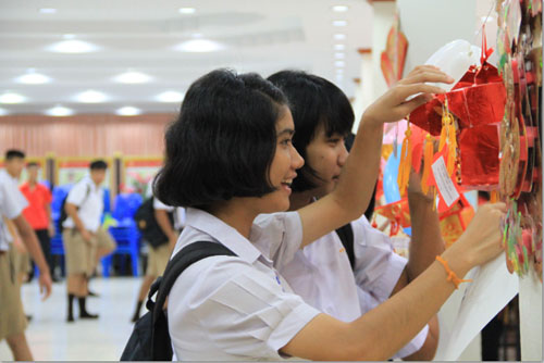 活动于上午9点在乌通学校开始,素攀孔子学院为此次活动设置了品尝月饼、剪纸、中国结、书法、京剧脸谱、猜灯谜、踢毽子七个体验区,学生们身着不同色彩的服装分组体验各种中国传统文化。月饼的纯香、剪纸的精致、中国结的细腻、书法的苍劲、京剧脸谱的豪迈引起了学生们的浓厚兴趣,猜灯谜、踢毽子环节则激发了他们相互间一较高下的热情。由衷的喝彩、开心的笑容充满整个场馆,一如他们身上五颜六色的校服,绽放出青春的色彩。