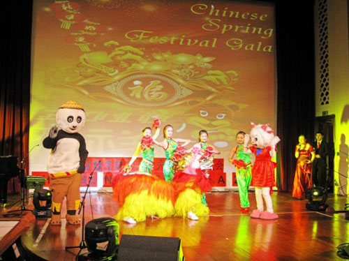 文艺晚会由卡迪夫大学孔子学院主办,卡迪夫大学中国学联协办,并得到伦敦南岸大学孔子学院的大力支持。晚七点,在喜庆欢快的狮舞和新韵秧歌中,晚会隆重拉开帷幕。整台晚会以中国文化为主线,节目精彩纷呈,妙趣横生。来自卡迪夫中国学联的学生演员各显身手,说学逗唱,载歌载舞。伦敦南岸孔子学院合作院校哈尔滨中医药大学舞蹈团带来了四个精彩节目。金发碧眼的英国小朋友表演的《中国扇舞》迎来了整整掌声。卡迪夫中国留学生创作的喜剧《新唐伯虎点秋香》土洋结合、亦庄亦谐,深受年轻观众的喜爱。《太极扇》和《中国服装秀》成为本次晚会的亮点。表演《太极扇》的武术队员个个功底扎实,朝气蓬勃,他们的一招一式深深打动了中外观众,赢得了满场喝彩。《中国服装秀》则为观众展示了一幅优雅含蓄的东方画卷,旗袍的光影、东方古典音乐和迷离的灯光交相呼应,使观众如置身于神秘的东方大陆,回味无穷。晚会持续两个小时,在欢乐祥和的新年祝福中落下帷幕。