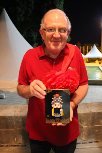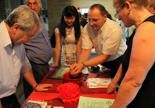 活动第三项便是最受欢迎的博饼活动。中秋博饼是闽南的传统习俗,孔子学院把这一习俗带到了马耳他。大家兴奋地来到桌前,个个摩拳擦掌、跃跃欲试。在骰子撞击瓷碗的叮当声中,本次活动达到了高潮。大家都收获颇丰。有人拿到了丝绸手帕、中国皮影;有人拿到景泰蓝书签、刺绣杯垫、刺绣抱枕等。状元们是最让人羡慕的,京剧人物泥塑便是状元的战利品。