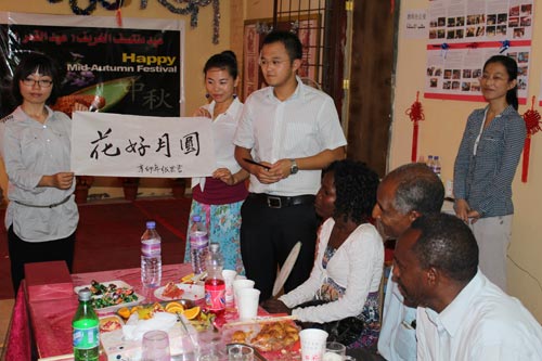 2011年9月8日至12日,喀土穆大学孔子学院成功举办了三场中秋节文化体验活动。喀土穆大学校方领导及孔子学院董事、政府官员及学生代表、孔院全体教职员工欢聚一堂,共同庆祝中国传统节日—中秋节。