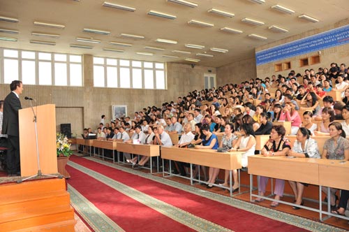 校长阿桑别克夫充分肯定了孔子学院三年来的工作,他高度评价了孔子学院把人文大学的一线汉语教师推荐到中国进行专业培训,把人文大学优秀学生推荐到中国留学的工作。此外,对在人文大学开展了很多的汉语培训班的教学活动也赞赏有加。