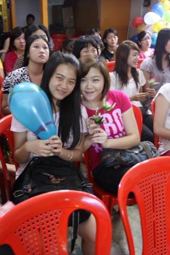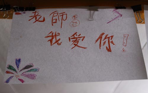 当2011年教师节来临之际,学校特意安排孔子课堂全体外派教师和学生一起度过一个有意义的教师节。庆祝会上,同学们一一上前用汉语向老师们汇报了各自学习汉语的感言,并向外派教师送上他们的节日礼物--气球、月饼、钢笔等精心准备的礼品。