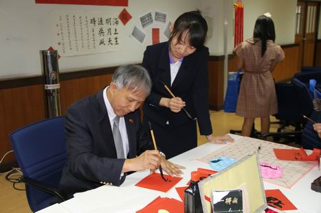 9月15日上午,由曼松德昭帕亚皇家师范大学孔子学院与泰国公务员委员会联合举办的“中泰一家亲”中国文化体验活动在曼谷市公务员委员会办公楼会议厅举行。本次活动旨在让泰国公务员在学习一段汉语后,进一步体验凝聚浓厚中国文化元素,如中国结编织、中国书法、中国剪纸和中国民乐葫芦丝吹奏等,从而激发他们学习汉语的兴趣和热情。