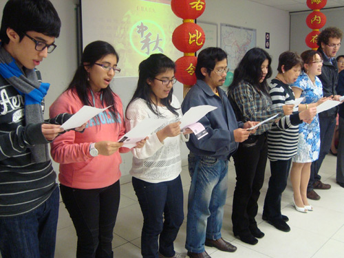 9月5日晚,秘鲁天主教大学孔子学院传来一片欢声笑语,原来是孔子学院正在举行主题为“海上生明月,天涯共此时”的中秋节庆祝活动。
