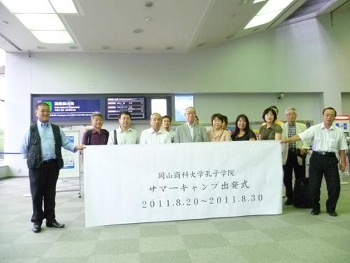 冈山商科大学校长、孔子学院理事长井尻昭夫(Ijiri akio)先生到机场欢送即将启程的学员们,并发表了热情洋溢的讲话。他希望学员们亲身感受中国的变化,体验中国文化,鼓励学院运用自己所学的汉语为中日交流做出贡献。