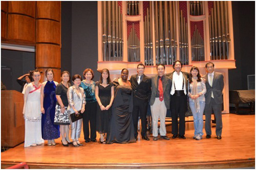 随即,孙禹先生登场,以一曲台湾爱国元老于右任先生所作的《望乡词》作为开场曲目,“葬我于高山之上兮,望我故乡;故乡不可见兮,永不能忘。葬我于高山之上兮,望我大陆,大陆不可见兮,只有痛哭。”孙老师用苍凉凝重的男中音将老先生临终前对祖国大陆故乡的那份难以割舍的眷恋演绎得情真意切,激起了身在异乡,远离祖国的华人观众胸中浓郁的思乡之情。孙禹先生浑厚深情的嗓音、高超娴熟的技巧、火一样的激情迅速征服了观众,整场音乐会进行得一气呵成。他先后用中文、意大利语、法语、英语四种语言演唱了八组曲目,其中蒙古族民歌《嘎达梅林》是他走向歌坛的成名曲目,那极富磁性的音色及声音力度的适度拿捏,所营造出的优美深情的意境,把蒙古族人民豪迈悠远的特质演绎得生动而鲜明;歌剧《浮士德》中的咏叹调《贞洁的小屋,我向你致敬》,对声音的把握游刃有余,既有男中音的醇厚恢弘,又有轻柔美妙的弱声,舒缓而又牵人魂魄,把音乐会的气氛推向了一个高潮;音乐会结尾曲《造谣诽谤》,选自歌剧《塞维利亚的理发师》,这是孙禹先生在比利时皇家歌剧、维拉维尔国际歌剧大赛时的参赛曲目,他以富有表现力的声音和传神的形态把角色展现得生龙活虎,一曲终了全场起立,席间爆发出热烈的掌声。最后,音乐会在孙禹先生演唱完返场曲目《老人河》后掀起的阵阵喝彩声中圆满结束。