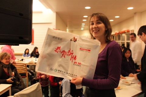 在喜洋洋的中国民乐中,与会宾客兴趣盎然地参加了筷子夹豆大赛、抢椅子等游戏。尤其令人喜爱的是那些由博德多个家庭收养的中国女童,她们穿上了漂亮的小旗袍,兴高采烈地吃中餐、做游戏,和挪威亲人一起沉浸在喜庆的气氛中。
