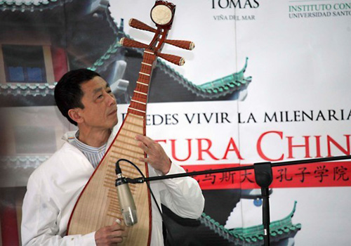 9月27日下午,智利海滨城市维尼德尔玛天气晴朗,海风轻柔,街道两旁的树木刚刚吐出嫩绿的新芽。在圣托马斯大学孔子学院里,一场以庆中秋、迎国庆为主题的汉语俱乐部活动正在火热进行着。