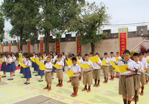 小学生齐声诵读儒学经典《论语》、《弟子规》