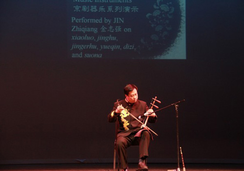 在接下来的京剧器乐展示这个节目中,来自中国戏曲学院的金志强老师为观众们带来了六种传统京剧器乐:小锣、京胡、京二胡、月琴、笛子和唢呐,金老师对每个乐器的纯熟的演奏征服了在场的所有观众,他表示非常开心能够通过这样的舞台向西方观众们展示和了解尽可能多的传统京剧乐器。