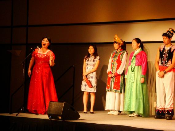在第二天举行的Fashion Show活动中,中国学生身着传统中国服饰,展现了中国多民族的风土人情,让来自各国的学生了解到中国文化的多样性。同时,来自山东大学的刘书妤老师为在座的师生现场演唱了《珠穆朗玛》、《爱我中华》等国内熟悉的歌曲,歌声婉转悠扬,大气沉静,得到了现场师生热烈的掌声。