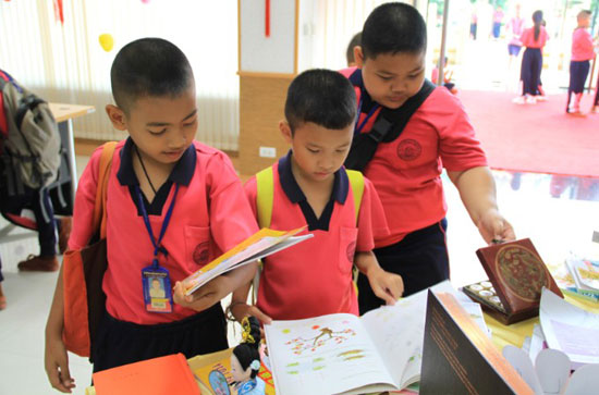 中文教材展示是此次活动的特色之一。挽武通大同学校成立于1940年,由当地善堂及热心人士出资成立的民办学校,现有学生800余名。学校从2007年开始尝试引入中国国内中文教材,在中文教材的配套使用上,有很大的选择空间,此次教材展示给该校师生提供了一个亲身了解时下各种最新中文教材的机会,来自中国国家汉办的多种教材摆放在中央展台,供师生们浏览、比较。素攀孔子学院也可以在第一时间了解到泰国学生及一线本土教师对这些教材的认可程度。